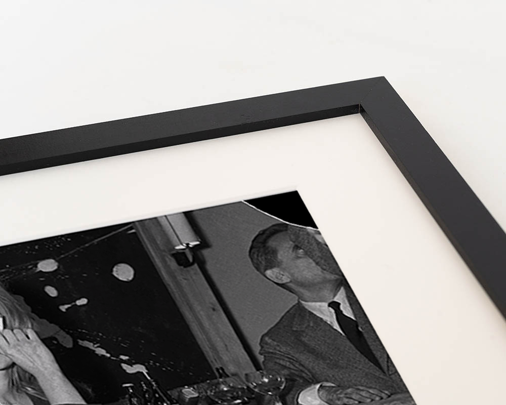 Hochwertiger Druck, Rahmen in schwarzem Buchenholz, mit Passepartout. Aufhängesystem inklusive.