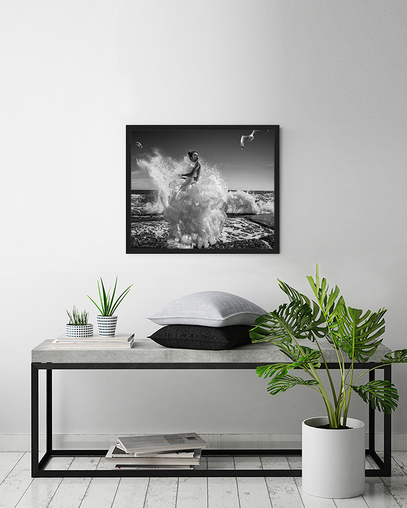 Hochwertiger Druck, Rahmen in schwarzem Buchenholz. Aufhängesystem inklusive.