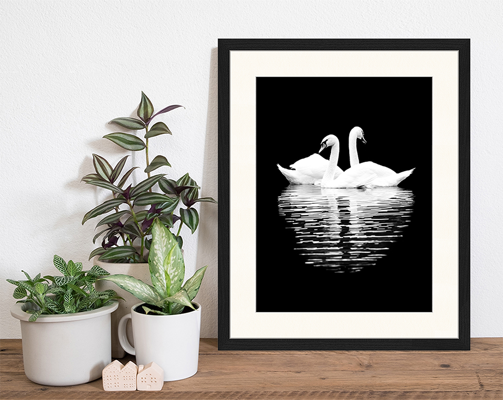 Hochwertiger Druck, Rahmen in schwarzem Buchenholz, mit Passepartout. Aufhängesystem inklusive.