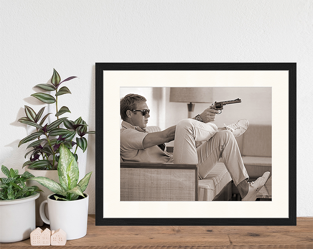 Steve McQueen im Jahr 1963 mit seiner Waffe - einem Colt Python - zu Hause in Kalifornien. Steve McQueen war für viele mehr als nur ein Schauspieler, das ultimative Vorbild. Ein Mann, der sich seines Selbstbewusstseins nicht schämt. Als Mann, der die Dinge immer nach seinen eigenen Vorstellungen tat, trägt der Schauspieler immer noch den Titel „King of Cool“.