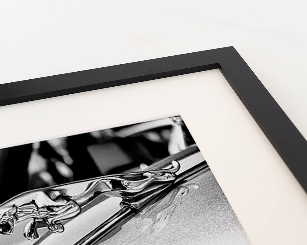 Framed Print in Black Beech Wood, with Passepartout. Hanging system included.