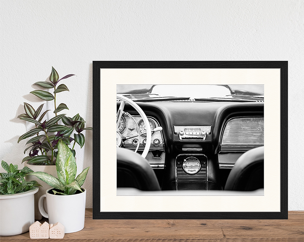 Hochwertiger Druck, Rahmen in schwarzem Buchenholz, mit Passepartout. Aufhängesystem inklusive.