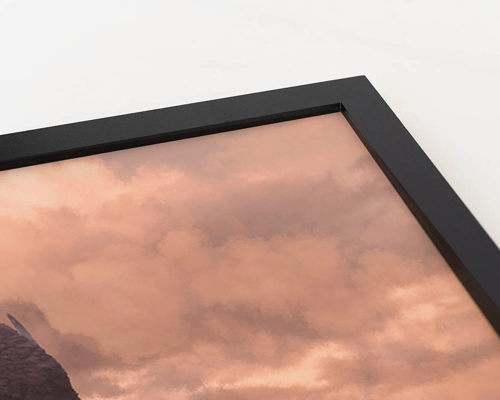 Print ingelijst in zwarte beukenhouten lijst. Inclusief ophangsysteem.