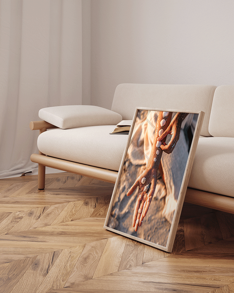 Framed Print in Natural Oak Wood. Hanging system included.