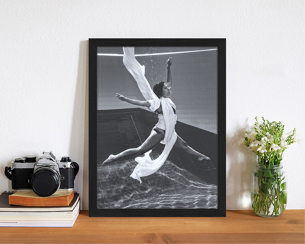 Print ingelijst in zwarte beukenhouten lijst. Inclusief ophangsysteem.