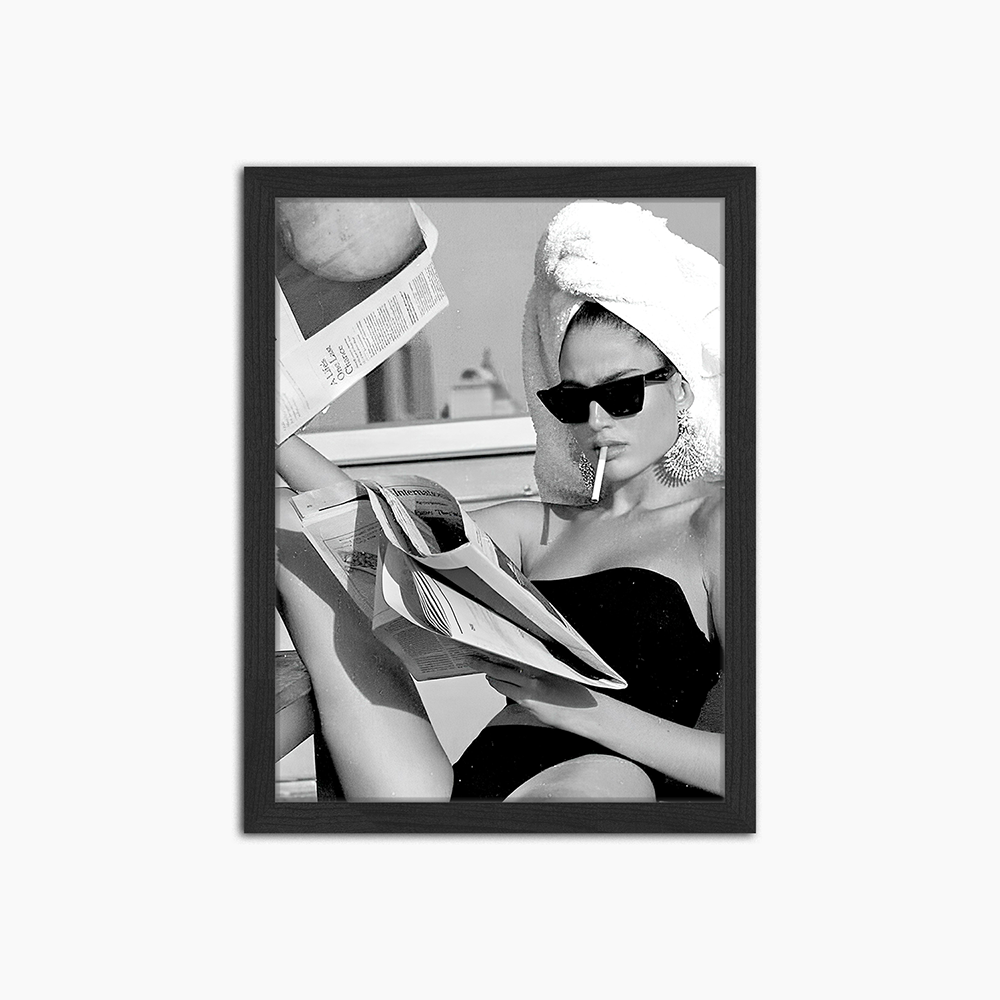 Print ingelijst in zwarte beukenhouten lijst. Inclusief ophangsysteem.
