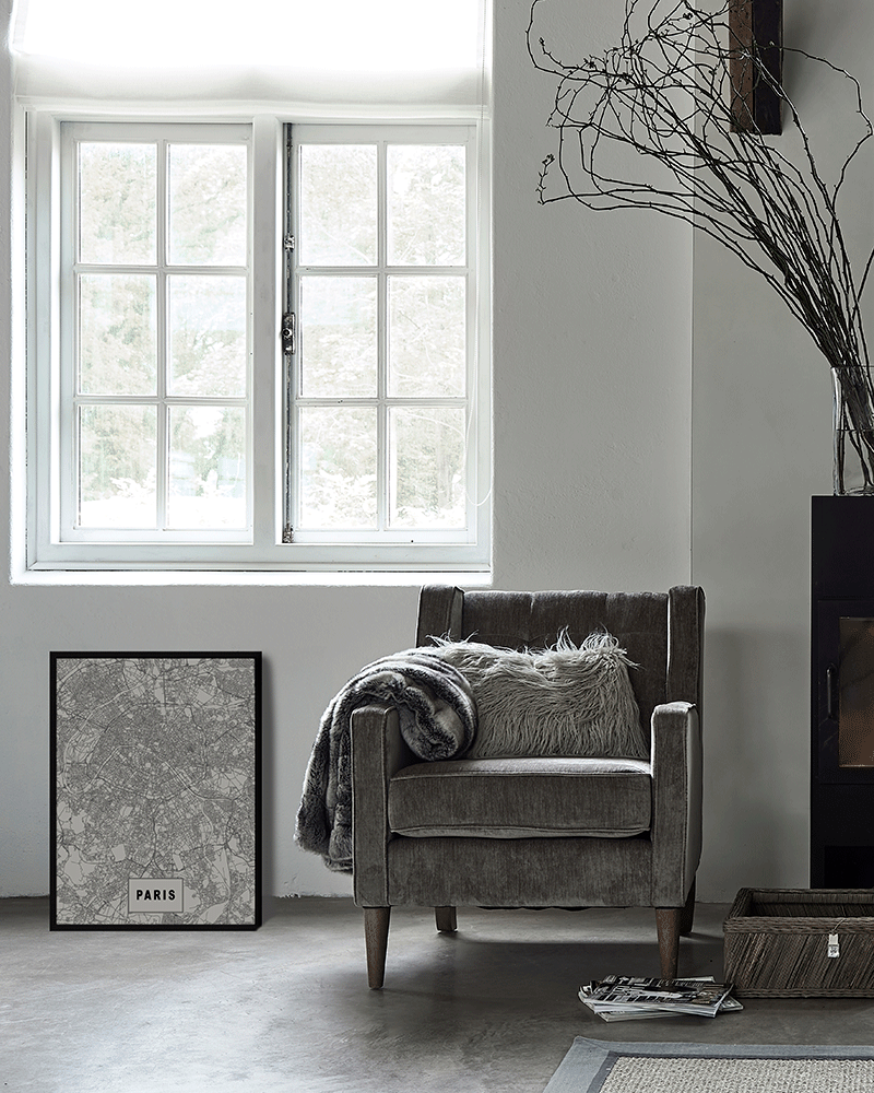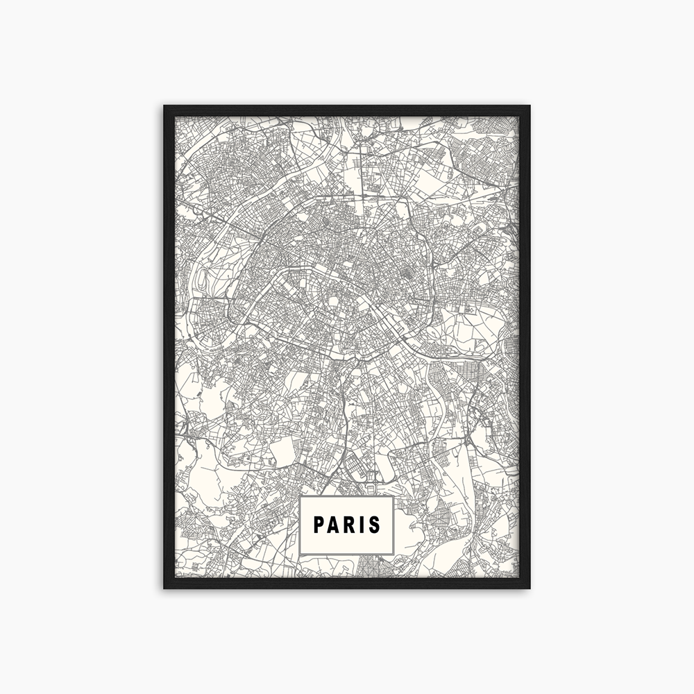 A detailed black and white map of Paris. A must have for anyone who loves the 'City of Light', one of the most evocative cities in the world.