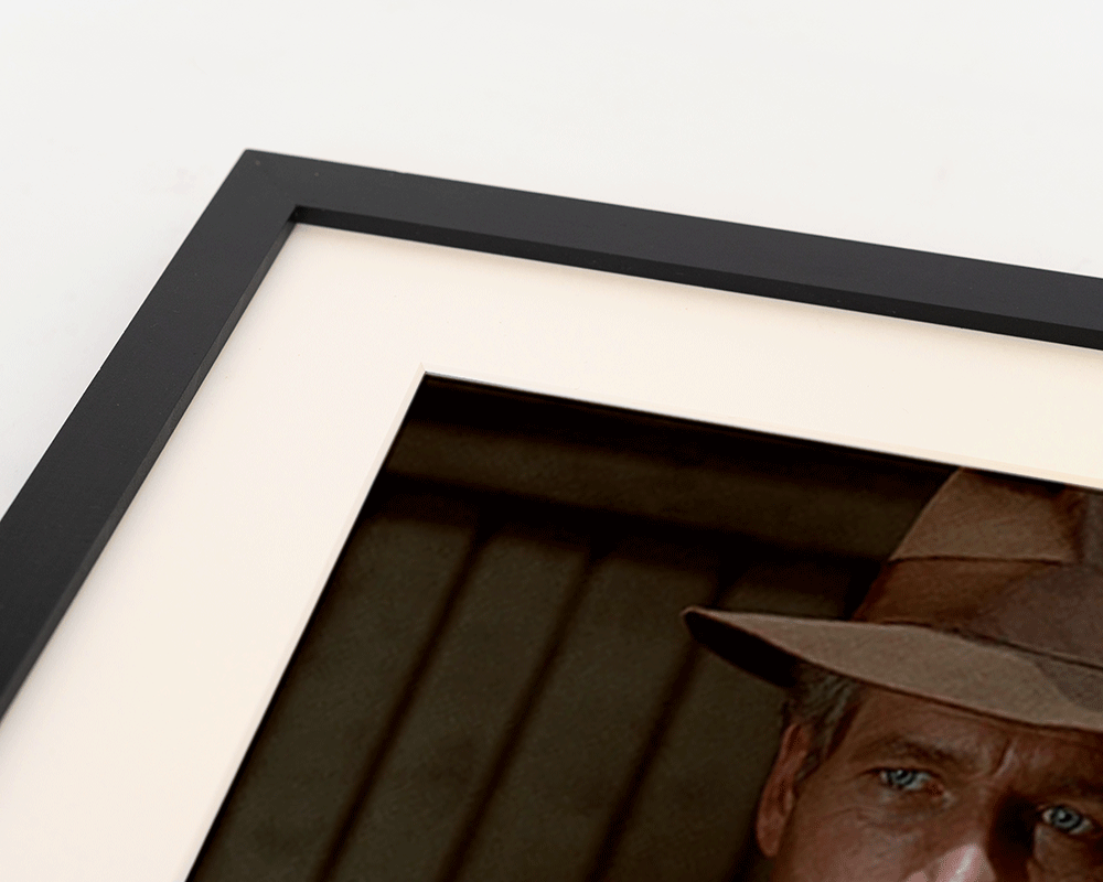 Ingelijste print in zwarte beukenhouten lijst, met passepartout. Inclusief ophangsysteem.