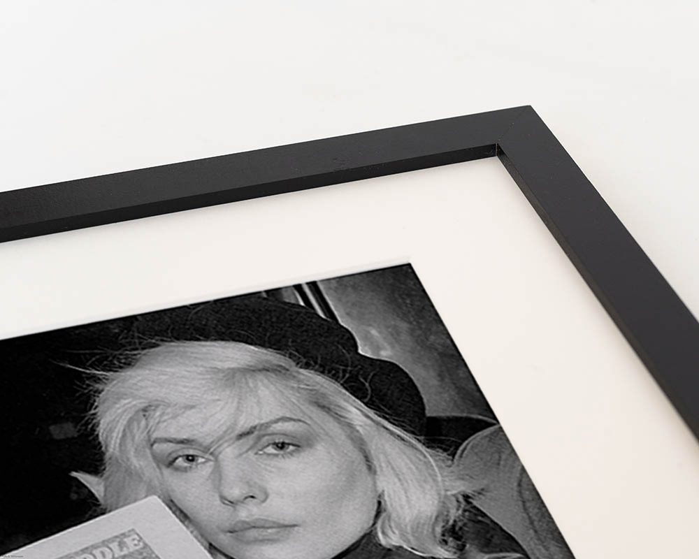 Ingelijste print in zwarte beukenhouten lijst, met passepartout. Inclusief ophangsysteem.