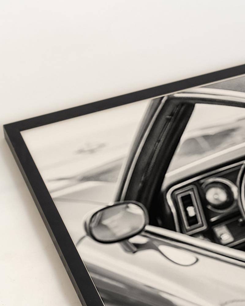 Print in zwart beukenhouten lijst. Inclusief ophangsysteem.