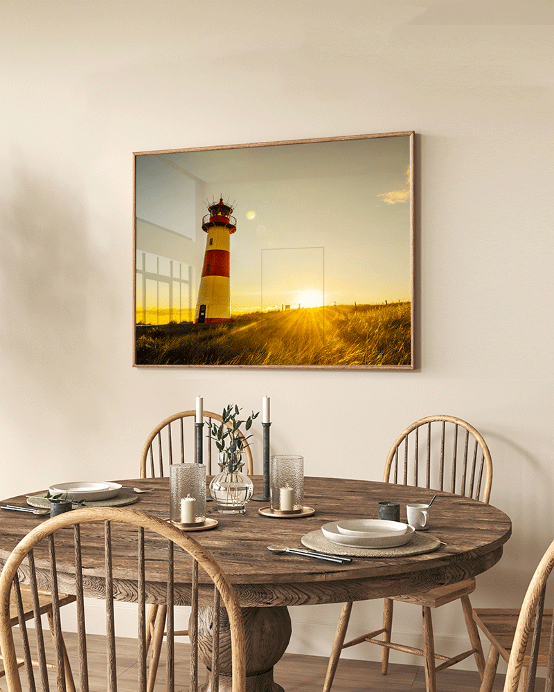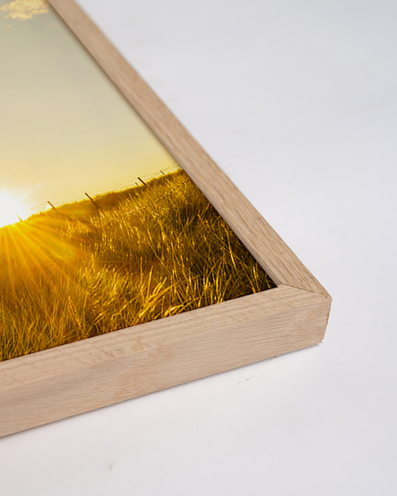 Ingelijste print in eikenhouten lijst. Inclusief ophangsysteem.