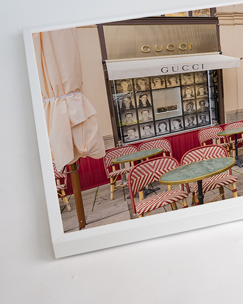 Ingelijste print in een smalle witte beukenhouten lijst. Ophangsysteem inbegrepen.