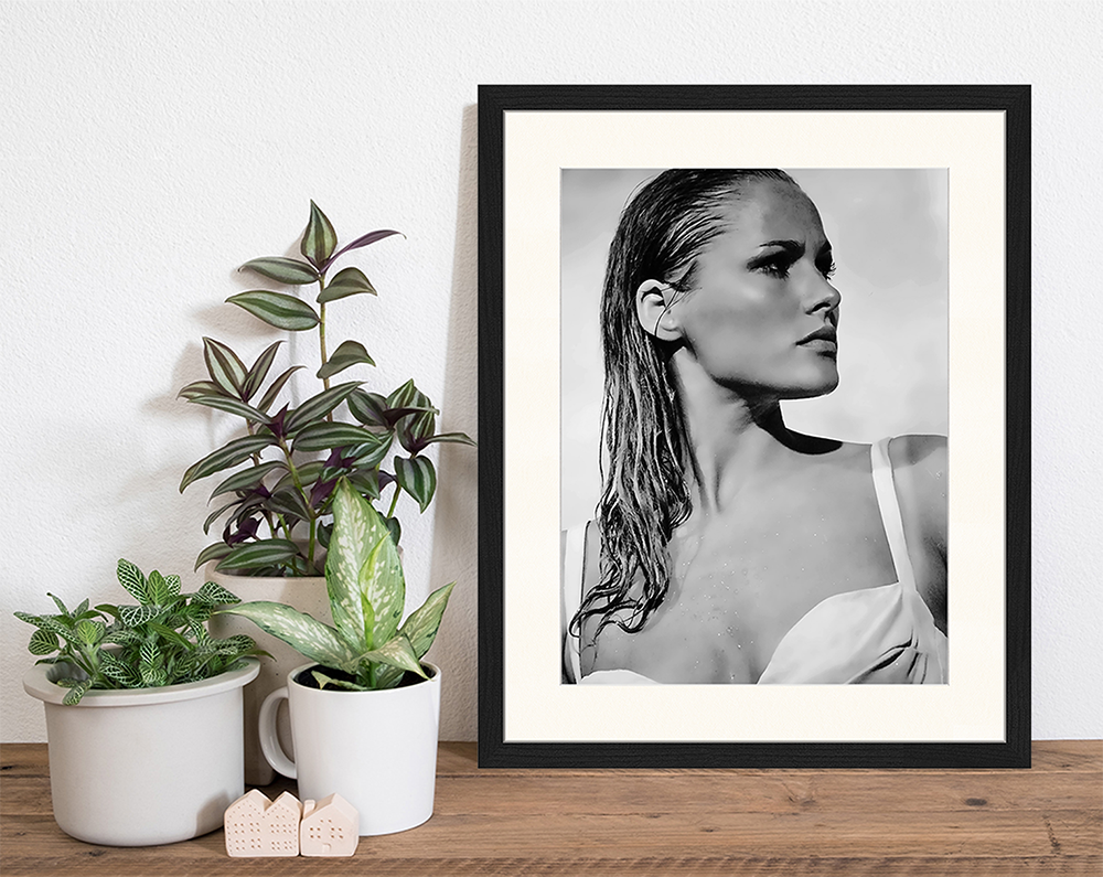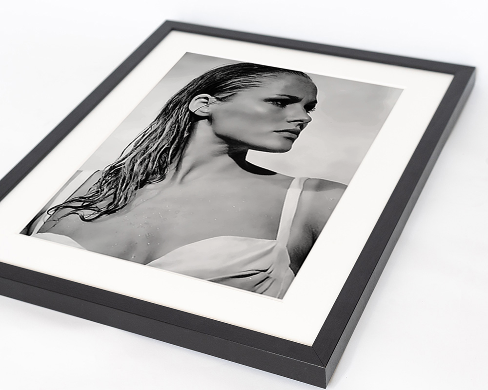 Ingelijste print in zwarte beukenhouten lijst, met passepartout. Inclusief ophangsysteem.