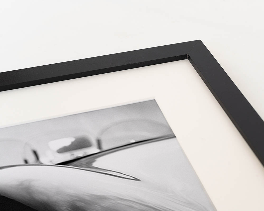 Framed Print in Black Beech Wood, with Passepartout. Hanging system included.