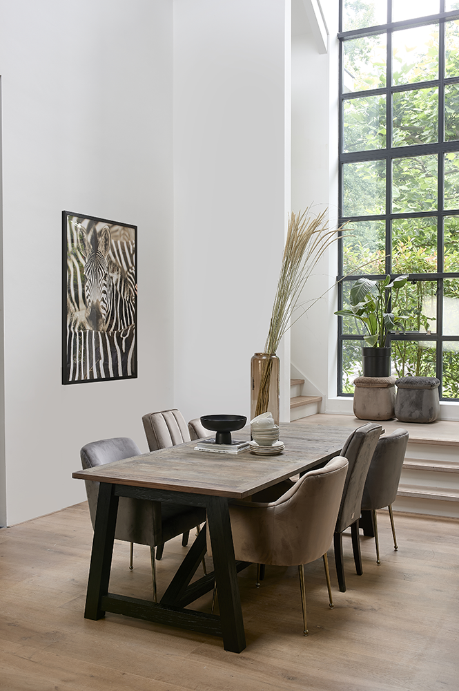 A close-up sepia photograph capturing the striking patterns of zebras, where their distinctive stripes blend harmoniously in warm, timeless tones. The soft sepia finish adds a vintage, artistic feel to the natural beauty of these animals.