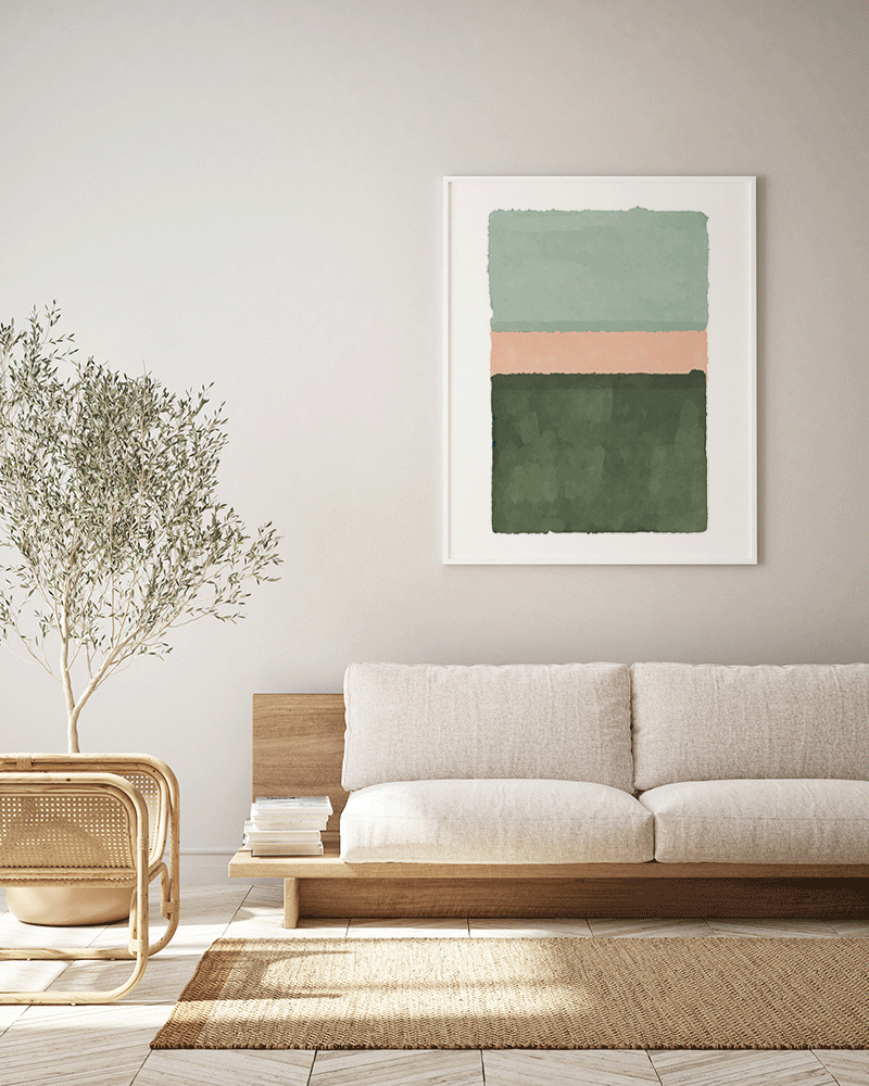 Abstract in Green and Salmon Pink