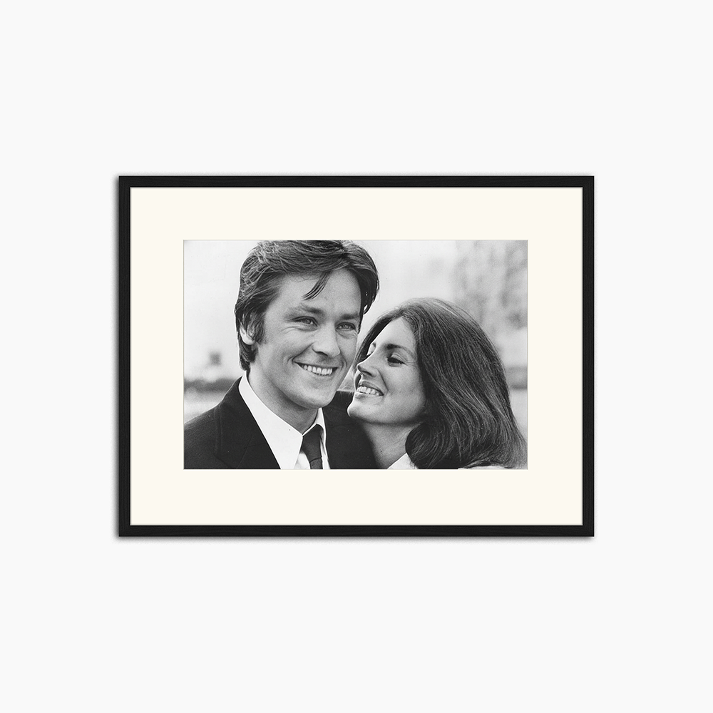 A photo of Alain Delon and Gayle Hunnicutt during the filming of the 1973 film Scorpio, features the two actors together, captured in a moment from the Cold War thriller.