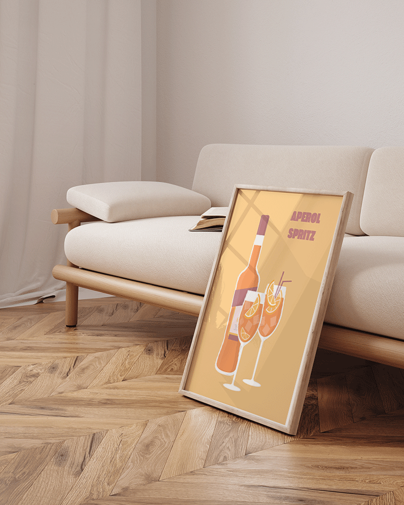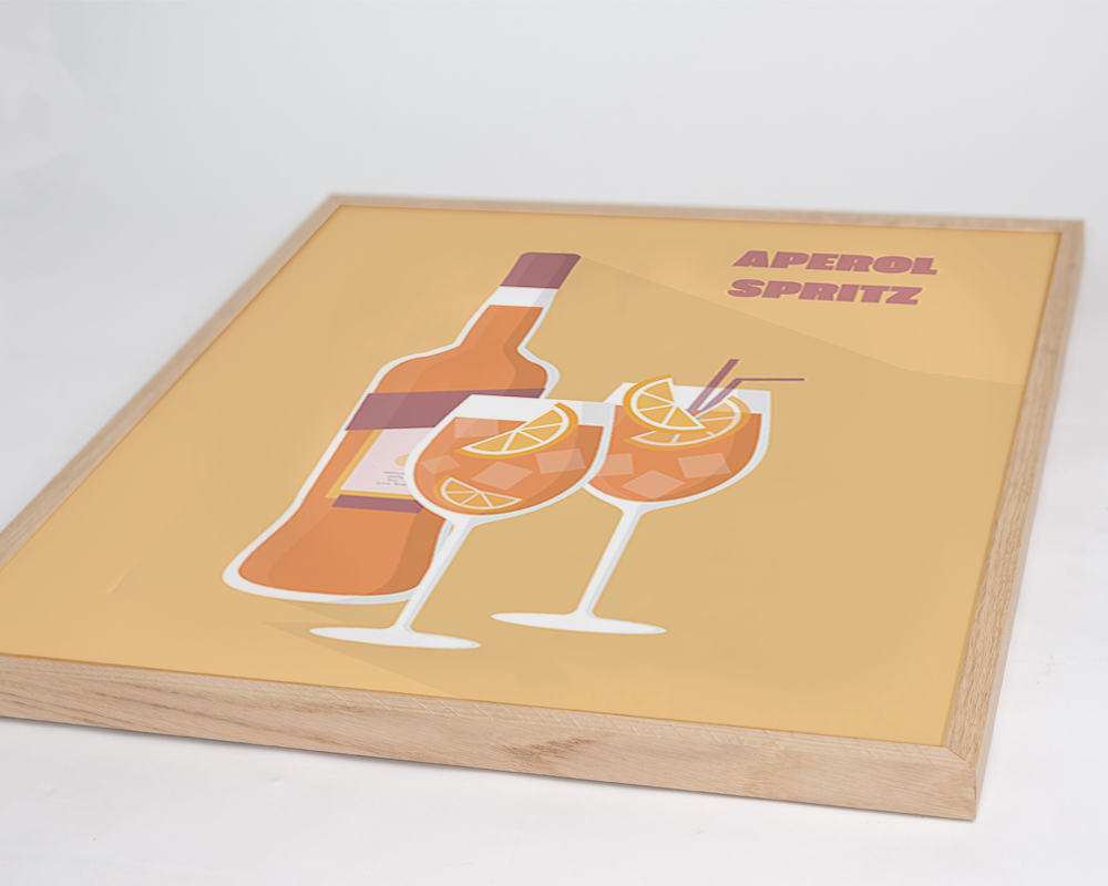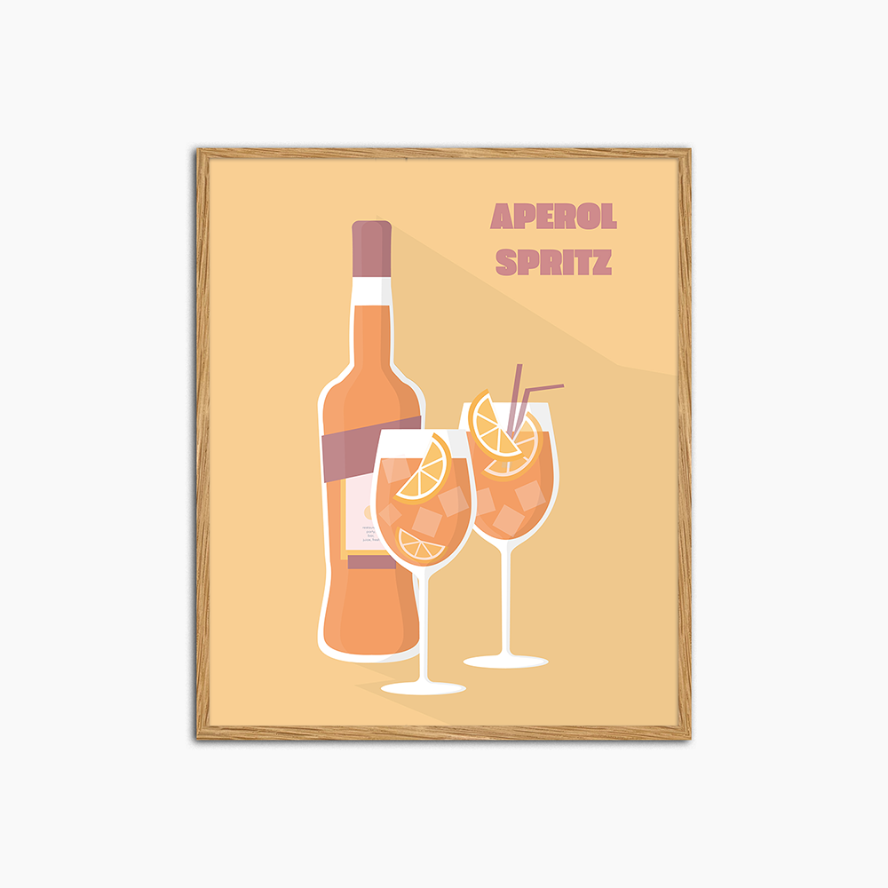 Aperol Spritz is one of the most consumed aperitifs worldwide. The ideal drink to enjoy a sunny day on the terrace. This colorful print perfectly reflects that feeling and creates a summery atmosphere in your home.