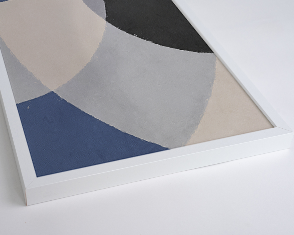 Abstract composition with geometric designs in navy tones, characterized by a minimalist and modern aesthetic, making it a suitable piece for contemporary spaces.