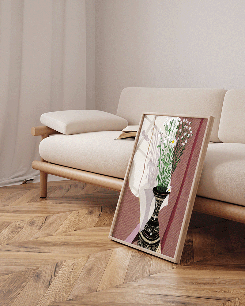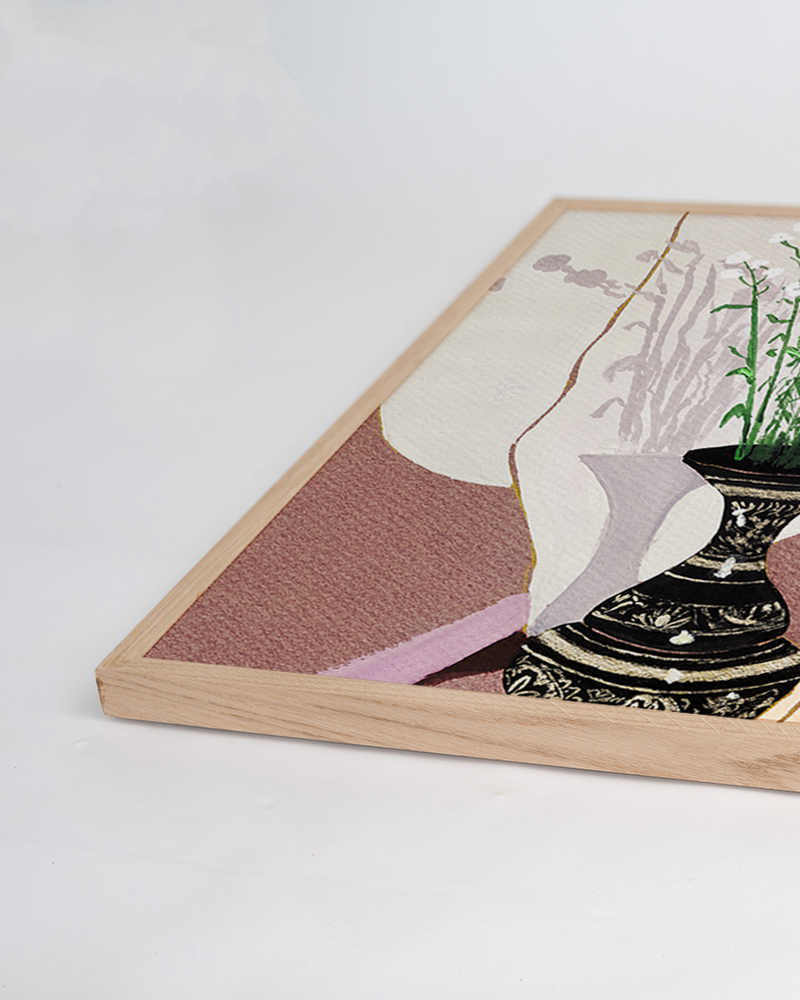 Framed Print in thin Natural Oak Wood. Hanging system included.