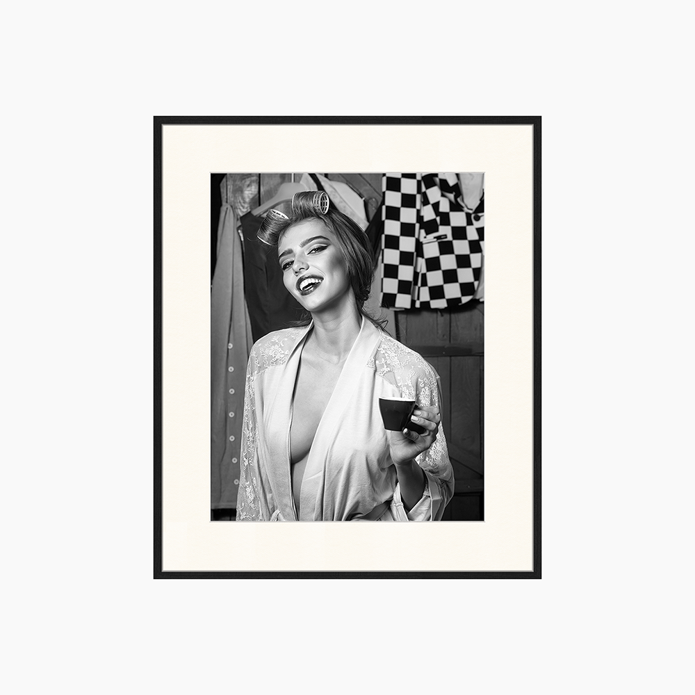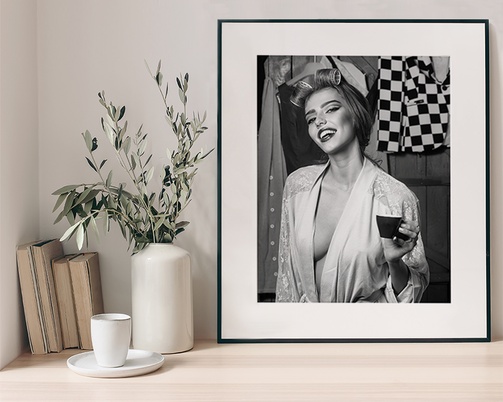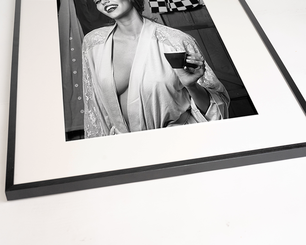 Framed Print in thin Black Beech Wood, with passepartout. Hanging system included.