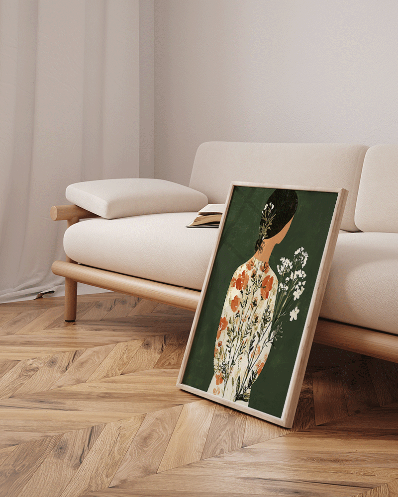 Green Japandi Flower Lady