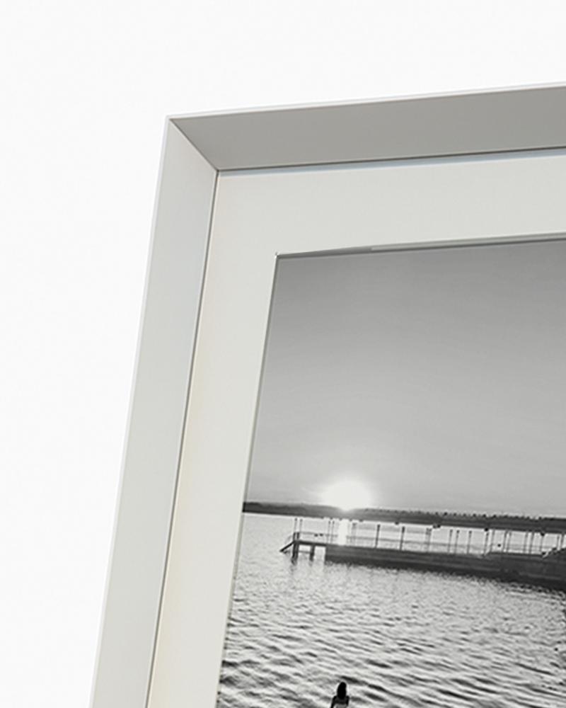 Framed print in a faceted wooden frame, with passepartout.
