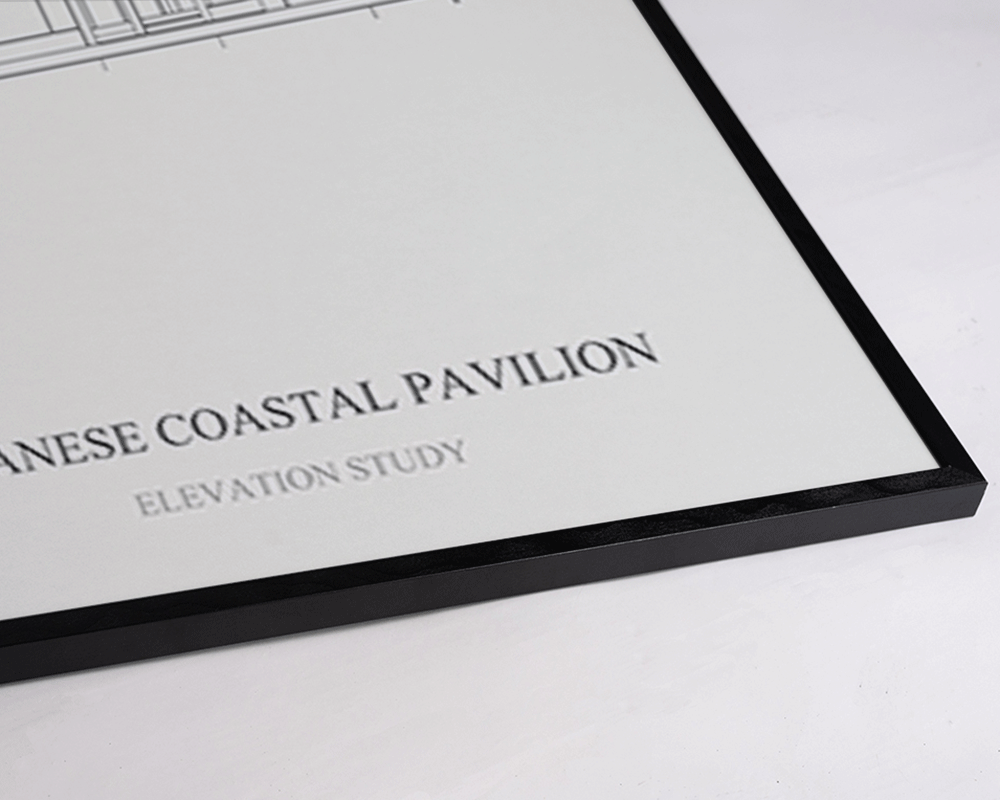Framed Print in thin Black Beech Wood. Hanging system included.