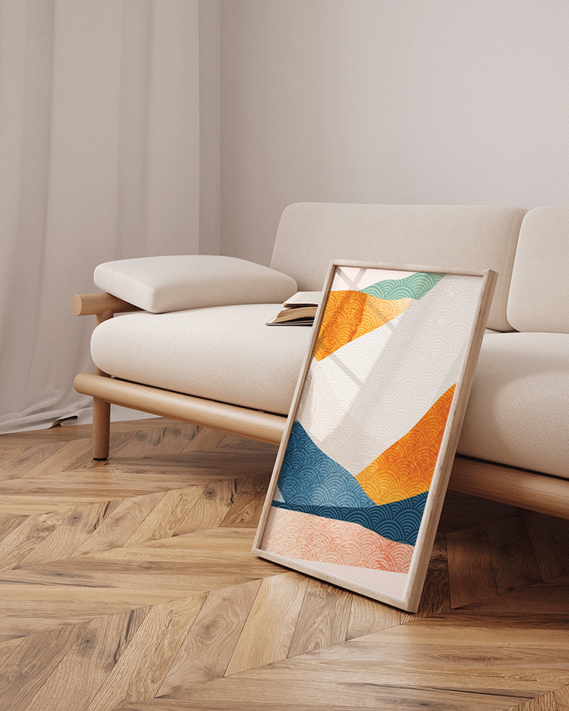 Framed Print in thin Natural Oak Wood. Hanging system included.