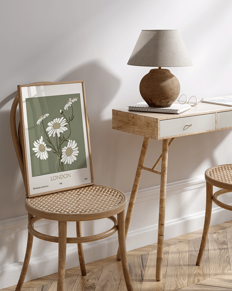 Framed Print in thin Natural Oak Wood. Hanging system included.