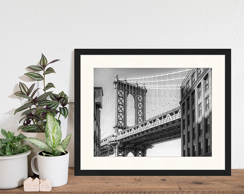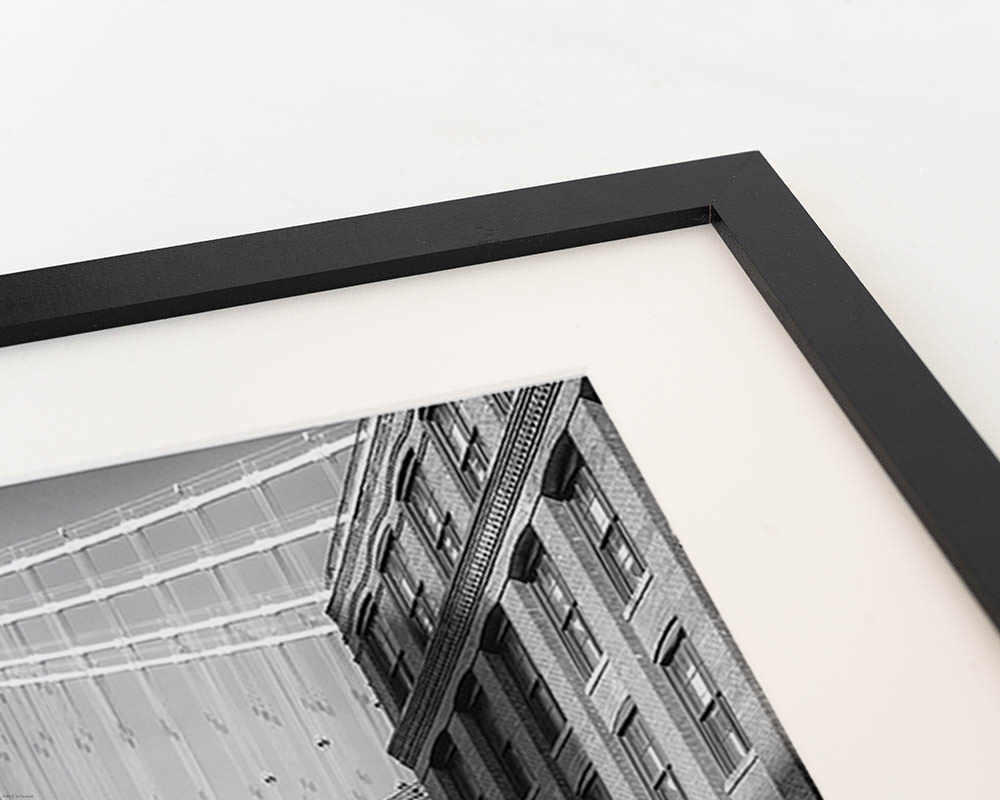 Framed Print in Black Beech Wood, with Passepartout. Hanging system included.