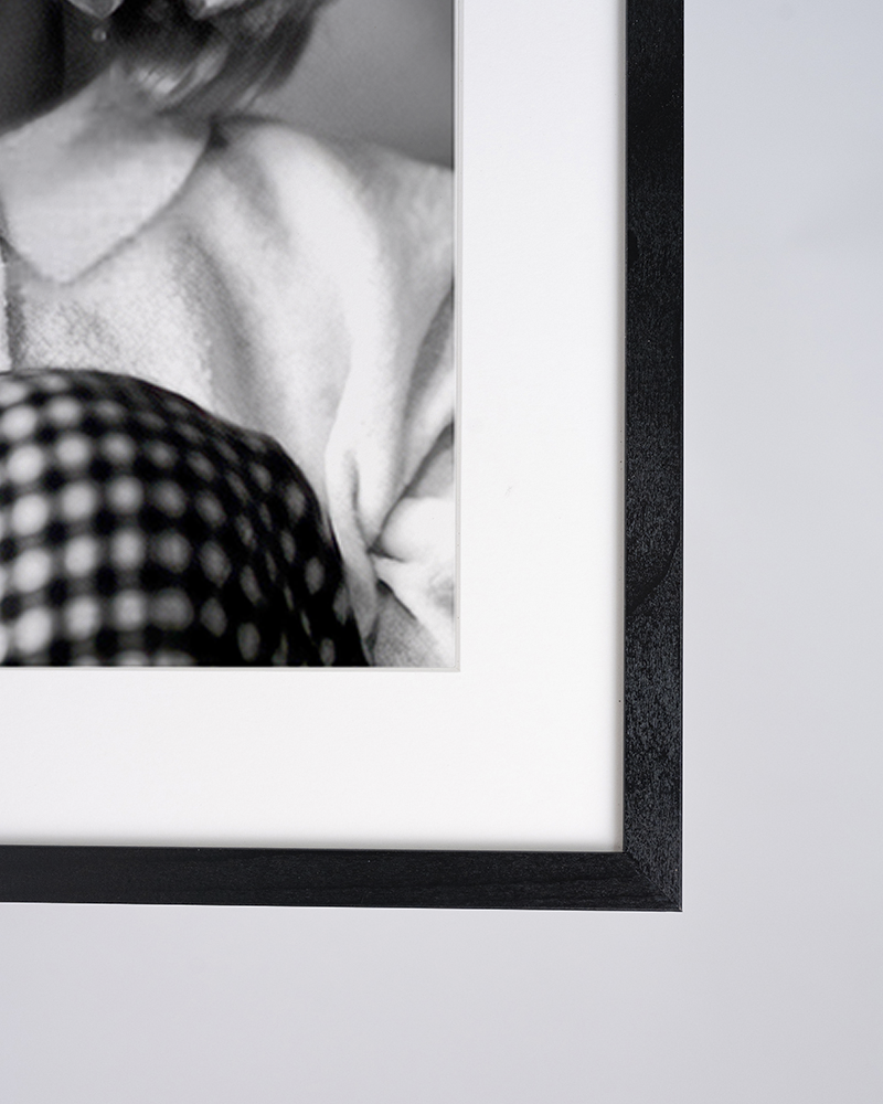 Framed Print in thin Black Beech Wood, with passepartout. Hanging system included.