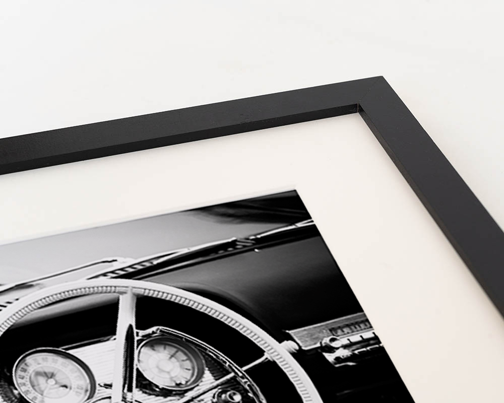 Framed Print in Black Beech Wood, with Passepartout. Hanging system included.
