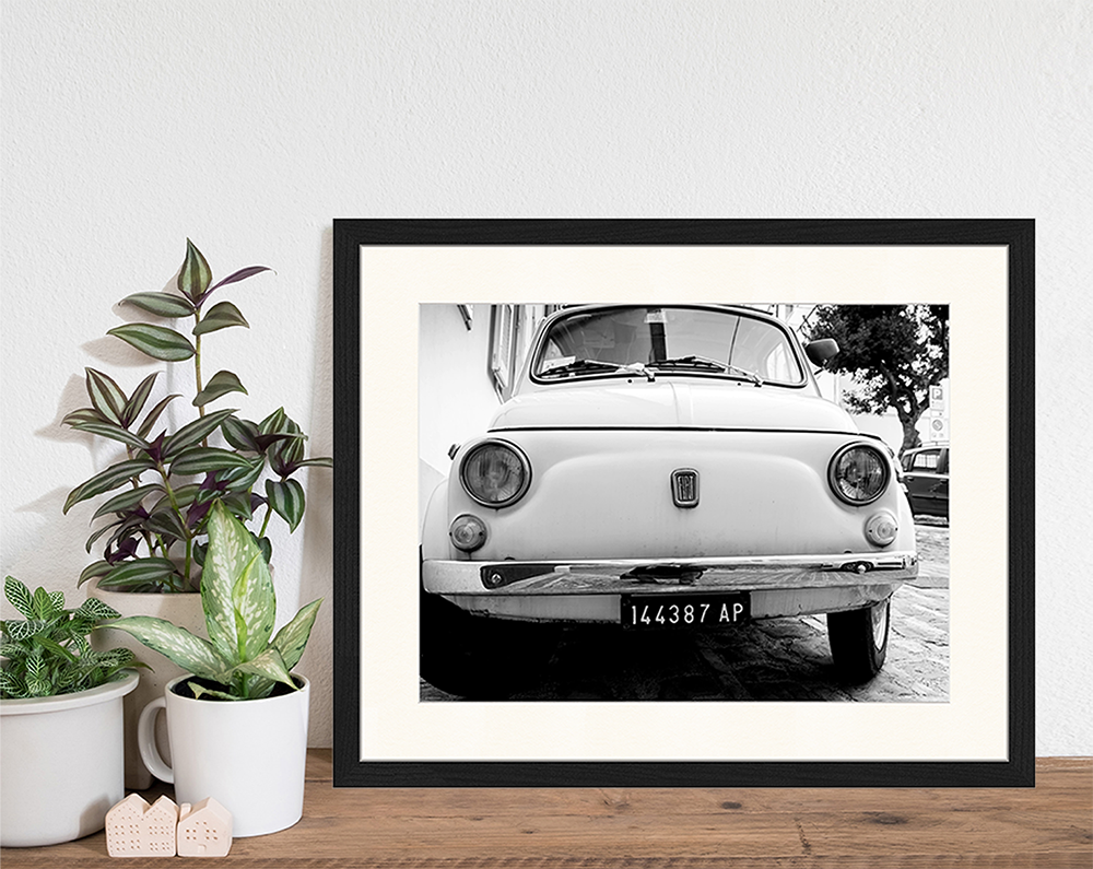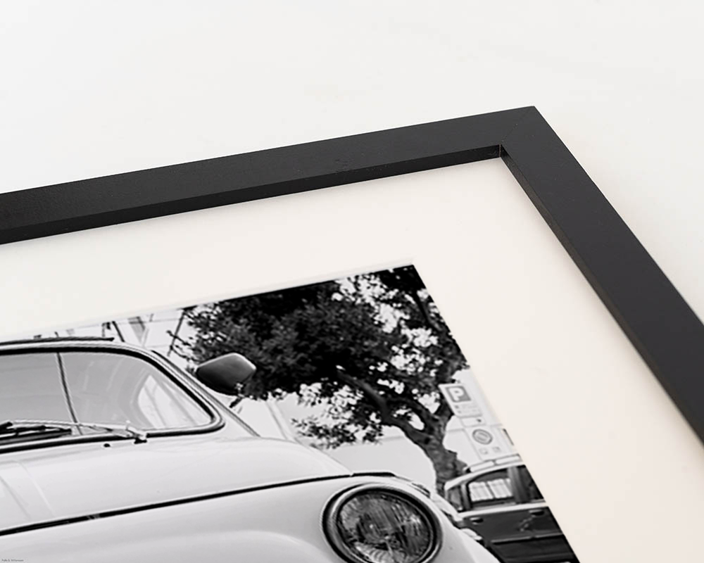 Framed Print in Black Beech Wood, with Passepartout. Hanging system included.