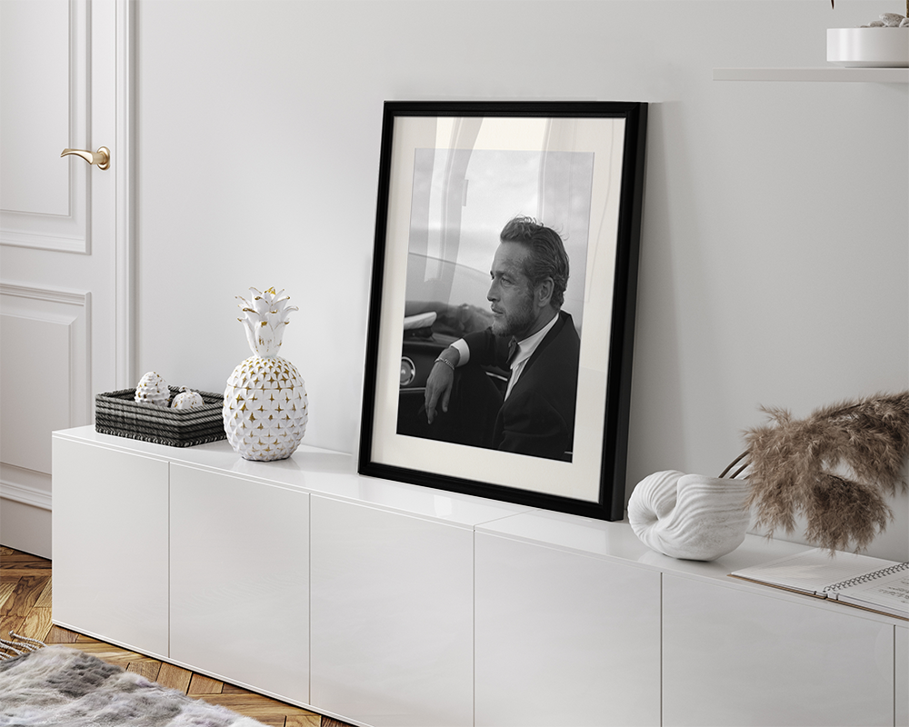 Framed Print in Black Beech Wood, with Passepartout. Hanging system included.