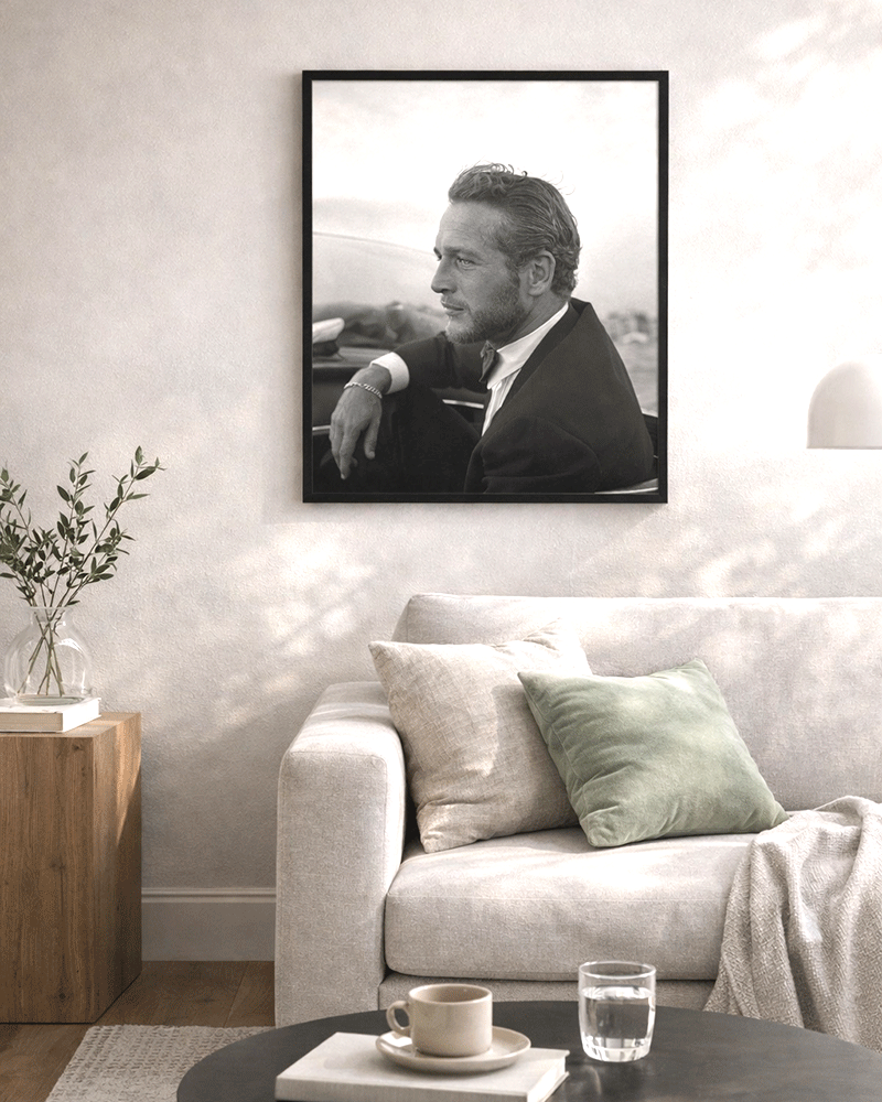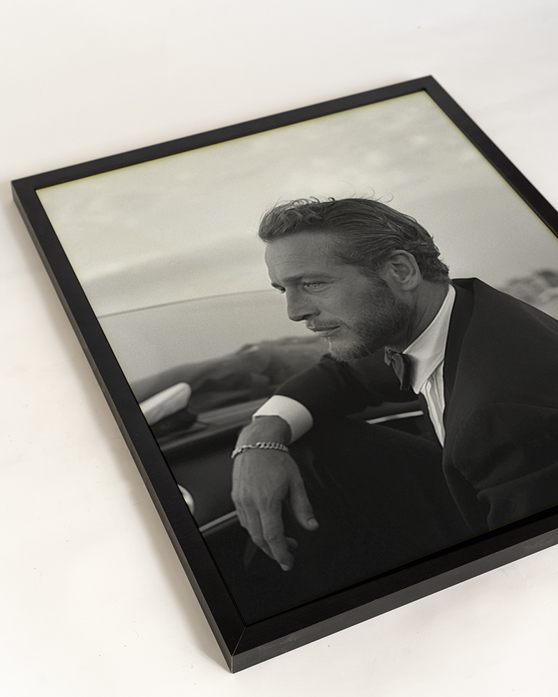 In this classic black and white photograph from 1963 we see the legendary Paul Newman in Venice. He exudes a timeless cool and elegance as he explores the city's picturesque canals. The image captures the charm and timeless appeal of this Hollywood icon in one of the most romantic cities in the world.