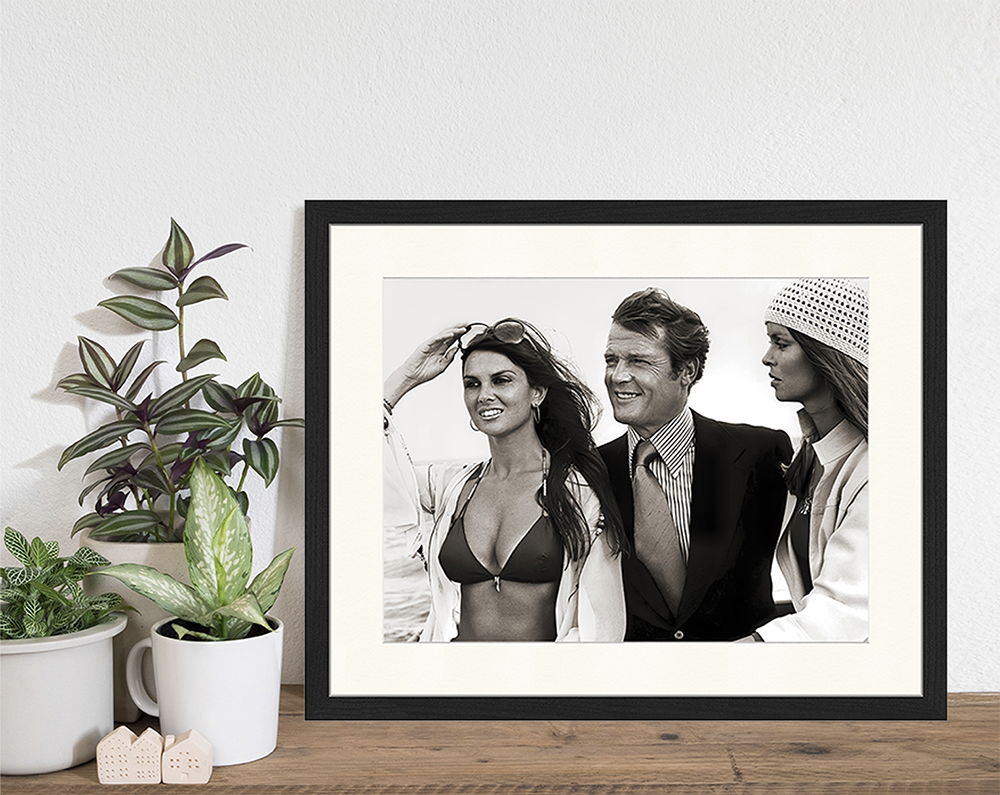Roger Moore, Caroline Munro and Barbara Bach