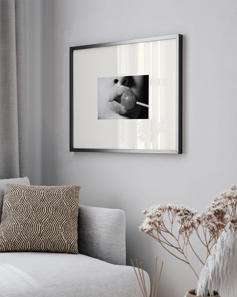 Framed Print in Black Beech Wood, with large passepartout. Hanging system included.