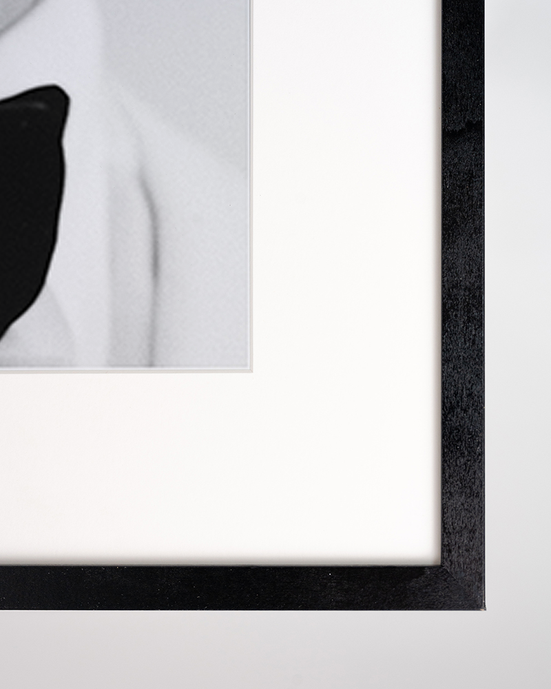 Framed Print in Black Beech Wood, with Passepartout. Hanging system included.