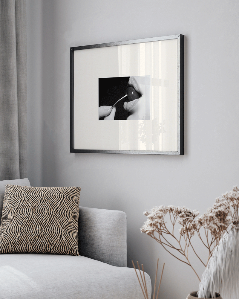 Framed Print in Black Beech Wood, with large passepartout. Hanging system included.
