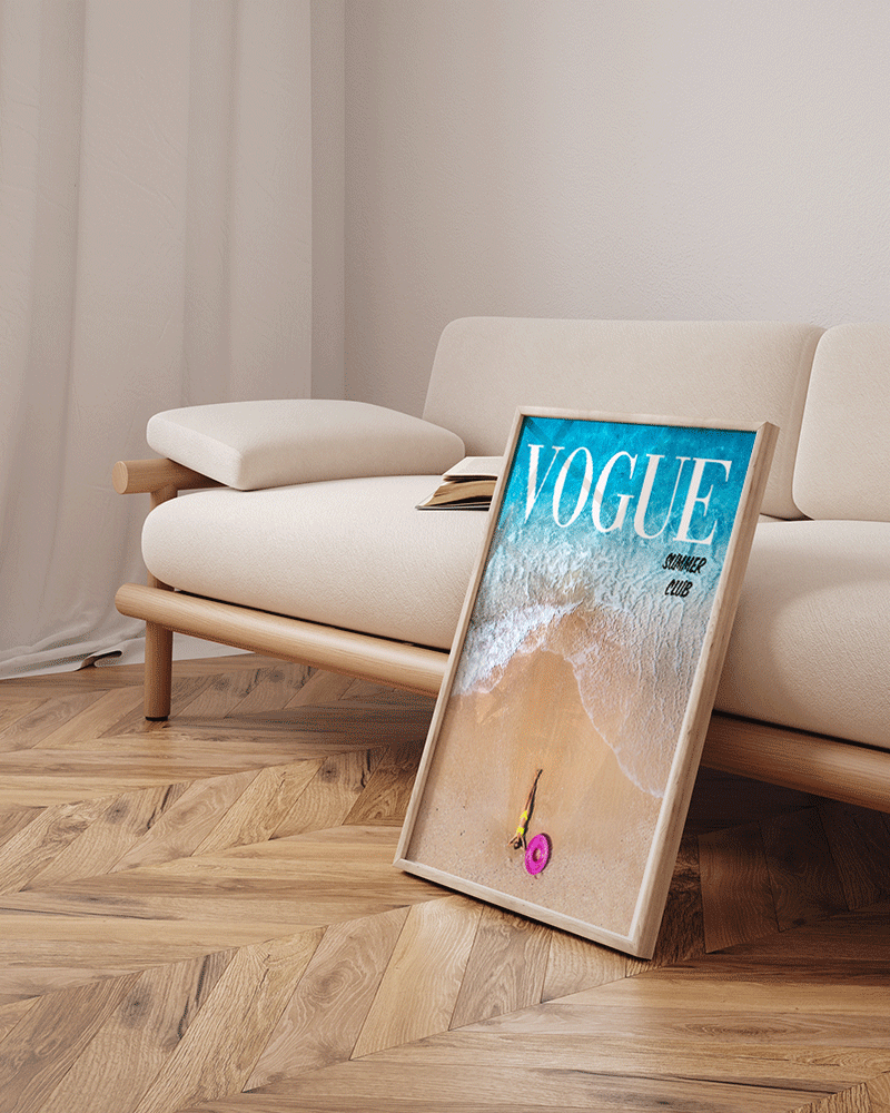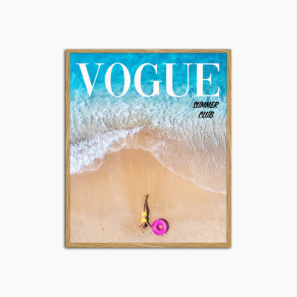 Fashion meets summer in this serene beach setting. With an overall leisure theme, the scene embodies a sense of elegance, relaxation, and the quintessential summer experience as envisioned by Vogue.